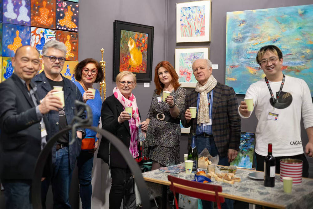 展览开幕式吸引了中法两国艺术界与跨界领域的名流嘉宾:中国著名画家陈军、法国国立高等装饰艺术学院教授 马克·唐吉(Marc Tanguy)、知名收藏家 让-理查·卡斯特洛(Jean-Richard Castello)、法中协会主席 帕特里克·德努瓦尔(Patrick Denoual)、法国游泳冠军 让-皮埃尔·勒克朗什(Jean-Pierre Le Clanche,2026年“大皇宫”项目赞助负责人)、法国电视媒体人 凯瑟琳·沙泽(Catherine Chazé)、旅法著名华人艺术家、法国美术家协会中法当代艺术总监 马泽霖,以及多位法国画廊负责人。现场气氛亲切热烈,跨界交流气息浓厚。