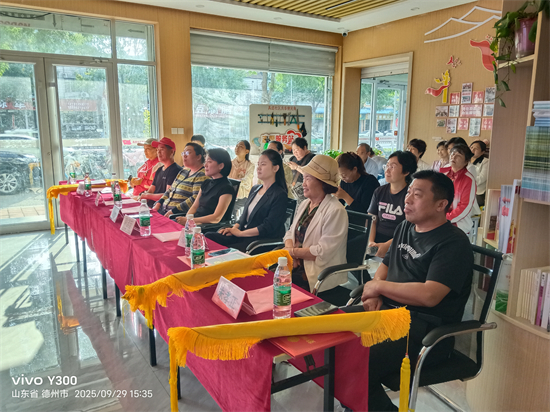 会议在下午两点半准时开始,参加会议的有禹城市妇联党组成员副主席张盛南。十里望乡回族镇党委副书记.镇长陈倩,十里望乡回族镇人大主席王乐,十里望乡回族镇组织委员李蕾,十里望乡禹迹社区书记陈振英。禹迹社区爱满书屋负责人闫春英。人大主席王乐,爱满书屋负责人闫春英分别致辞讲话,会上还为淄博站爱心志愿者王文晓站长,志愿者朱孝正,张仲爱,张爱云等帮扶孩子的八位志愿者颁发了锦旗和荣誉证书。