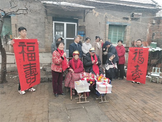 (撰稿:王文晓 记者:冯永军)2026年3月2日农历正月十四,这是一个特别的日子,早已立春的今天夜里下了一夜的雪,地上一片雪白,这场雪,可能是对冬天的留恋对春天的欢迎,让人心旷神怡,更是对一对百岁老寿星寿辰的祝福!女士刘素芬正好一百岁,先生张文化九十五岁,是一对恩爱的老夫妻。