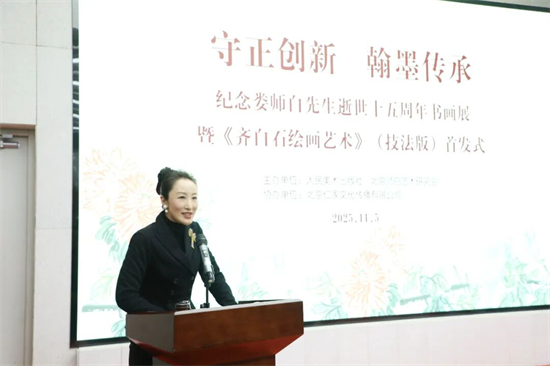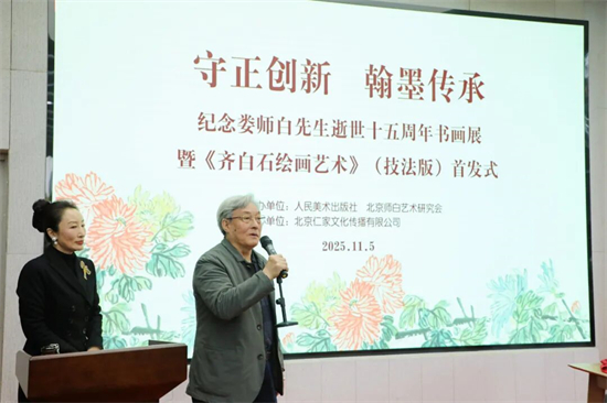 为传承齐派艺术文脉、致敬娄师白先生的艺术巨匠精神,2025年11月5日,由北京师白艺术研究会与人民美术出版社共同举办的“守正创新 翰墨传承:纪念娄师白先生逝世十五周年书画展”暨娄师白著、娄述德改编的《齐白石绘画艺术》(技法版)首发式在北京人美美术馆隆重开幕。