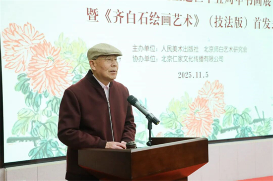 徐里表示:今天,我们怀着崇敬的心情,共同见证由人民美术出版社与北京师白艺术研究会联合主办的“守正创新·翰墨传承”主题活动启幕。这既是对娄师白先生逝世十五周年的深切缅怀,也是对齐派艺术薪火相传的郑重礼赞,更标志着承载着艺术传承使命的《齐白石绘画艺术》(技法版)正式与大家见面。