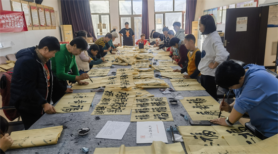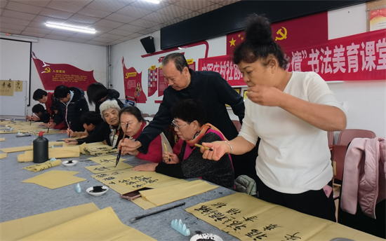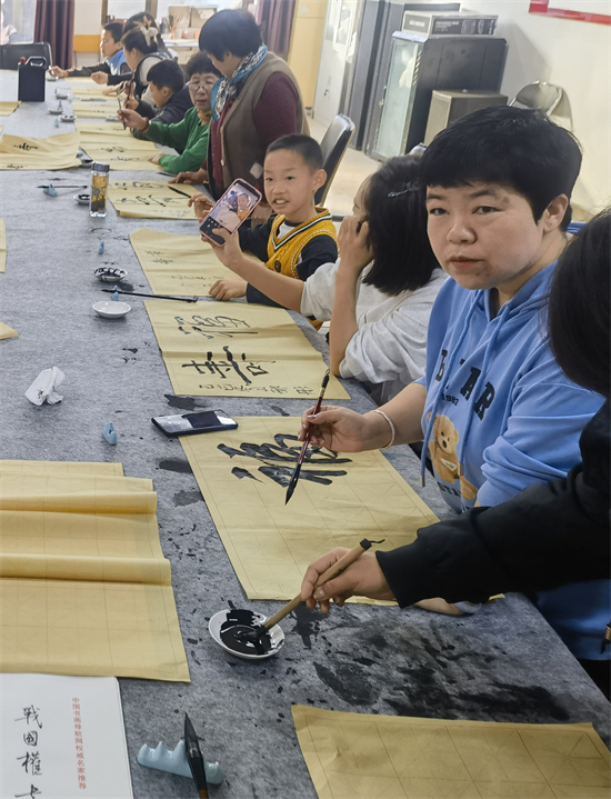 课堂上,学员们围坐在桌前,专注地临摹着字帖。教室里只听得见毛笔在宣纸上摩挲的沙沙声,仿佛是一首美妙的乐章。有的学员眉头紧锁,认真思考着笔画的走势;有的学员则面带微笑,沉浸在书法带来的愉悦之中。战国权老师在教室里来回走动,不时地停下来,为学员们指点一二。他轻轻握住学员的手,引导着他们调整用笔的力度和方向,那耐心细致的样子,就像一位慈爱的长者。