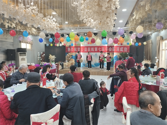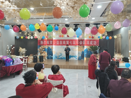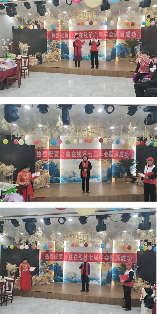 (编辑:冯永军)2026年元月5日上午11时,公益在线淄博站第七届年会隆重开幕。早上8点,志愿者就来到现场开始布置会场。大家有的整理舞台,有的吹气球挂气球。有的装果盘。10点左右已经把会场布置的即热烈又温馨,既有家的感觉又有过年的味道。