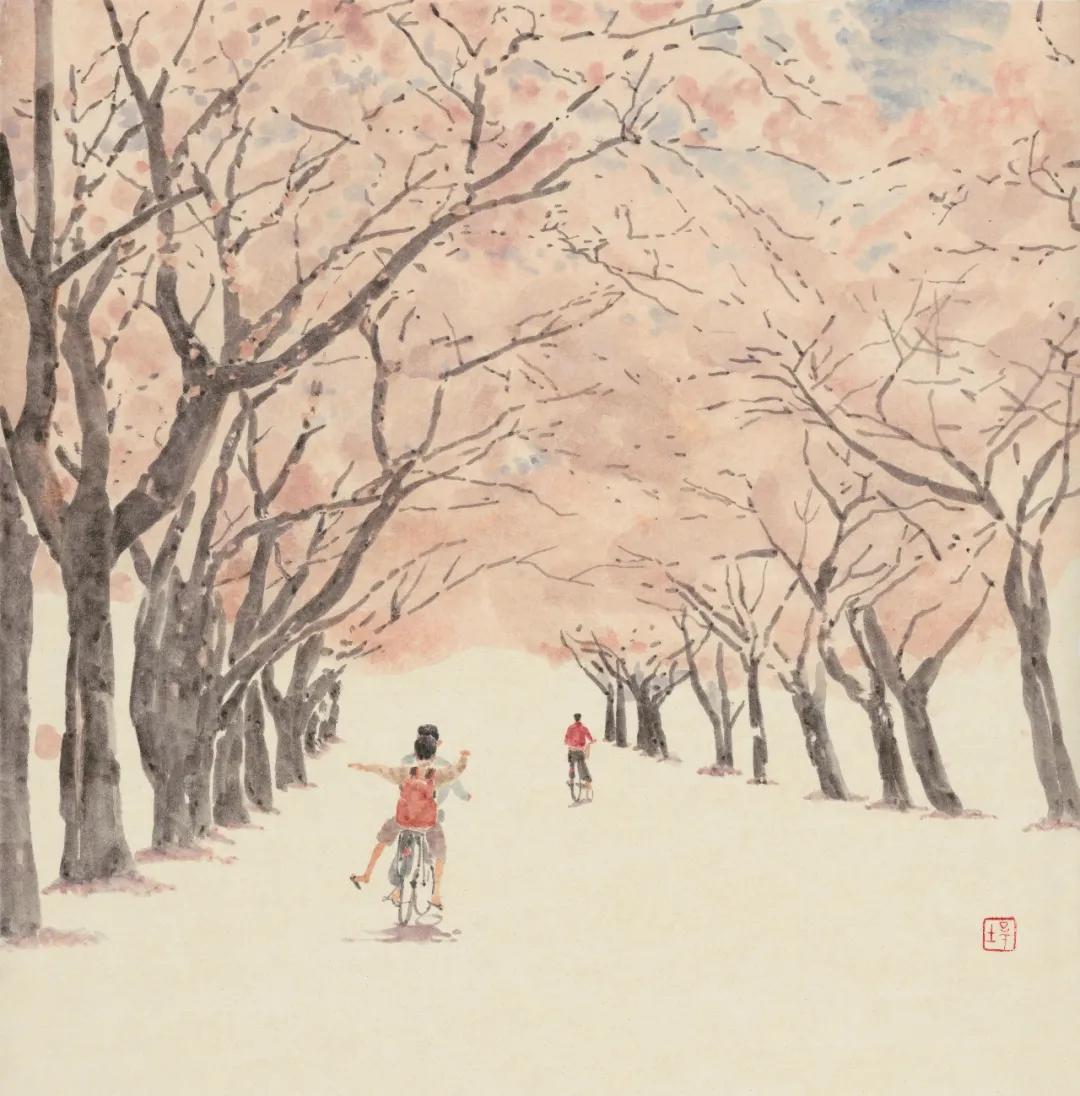 玉川,我们一起看樱花 38X38cm 纸本水墨 2020