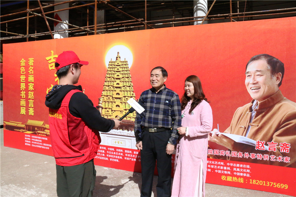 这次画展是赵言斋老师在日本展览成功后,回国的首场展览,而且此次展览与以往不同,在日本期间,听说五台山大宝寺正在修建大殿,需要善款,赵老师也想通过画笔义卖些作品,给大殿添砖加瓦,做些自己微薄的贡献,也希望更多的人关心,支持五台山佛教发展,在回国后就直奔五台山,筹备展览事宜。