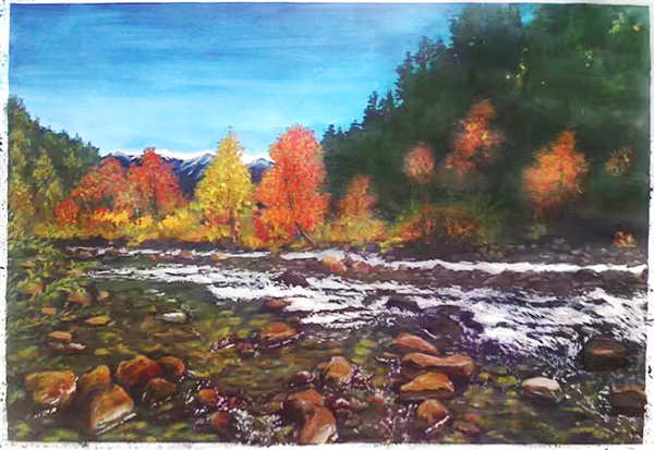 国画家孙岩峰老师认为:从丽芳的山水画中可以看出,她继承于传统山水画之中,彰显于她心中的山川秀水。大自然的造化,加之画家笔下的升华,给观赏者以天人合一之美。细品她的山水之作,自然会把你带入茫茫远处的群山,山间留白处似烟、似云又似雾。群山青翠,山坡上几间房屋在茂密的草木中间若隐若现,蕴含着浓郁的山水逸趣和乡土情怀。群山脚下,几亩良田,田埂不显规矩,与画面中的群山、河水、密林遥相呼应。河上的木桥脉脉相连,使画面连贯、统一。丽芳的画作用点皴积墨法,虽以墨色为主,但也墨色表现得极为丰富,强调了物象之间的层次与空间,愿青年画家丽芳的艺术之路越走越远,越画越好。