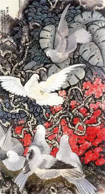 2003年9月北京人民大会堂收藏花鸟画作品5幅(其中三幅悬挂于人民大会堂第一宴会厅)